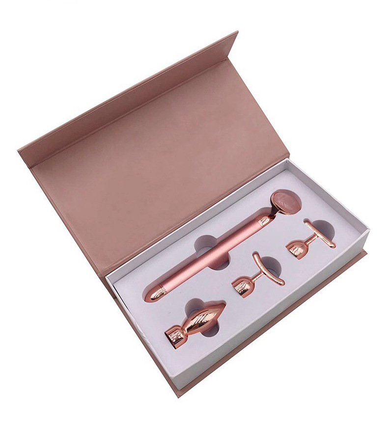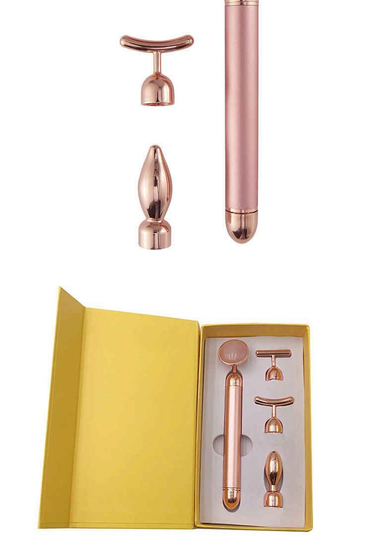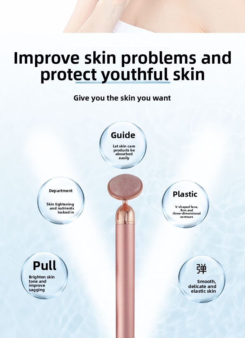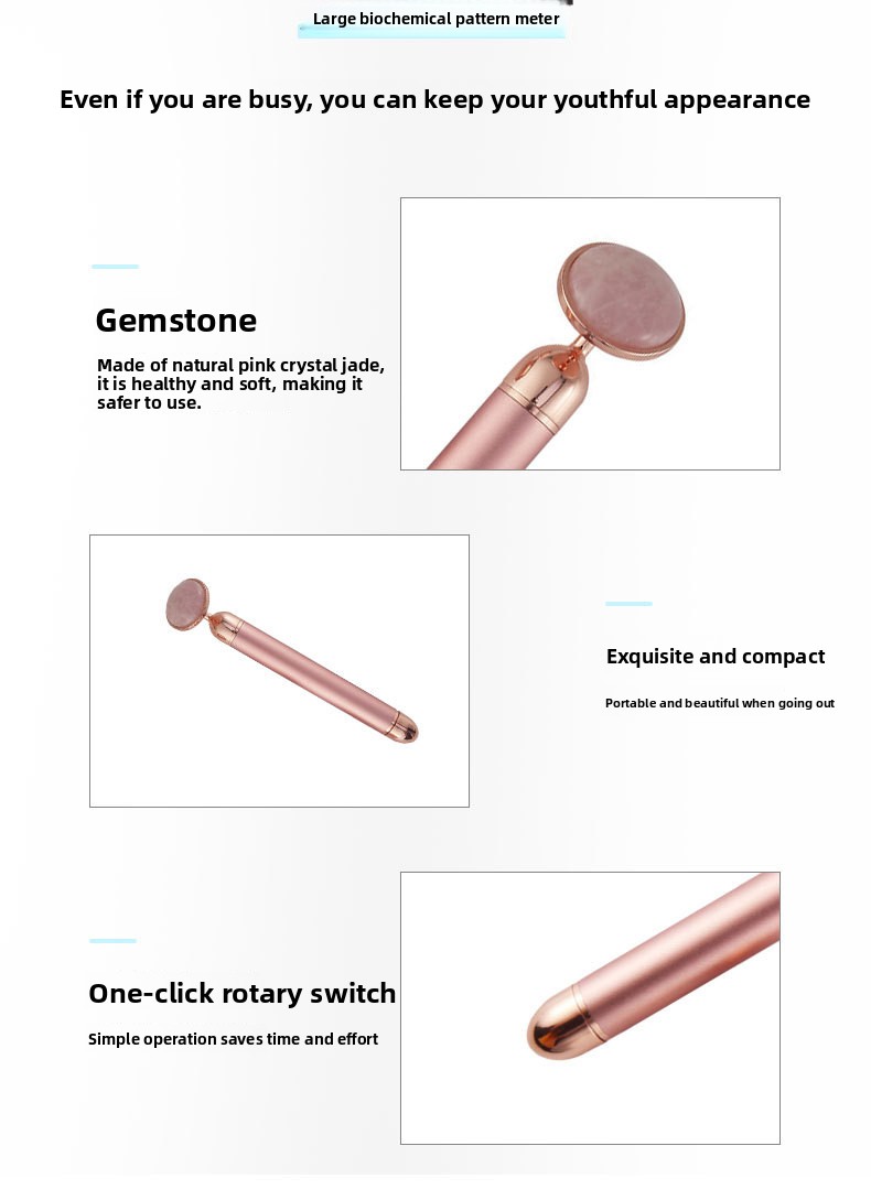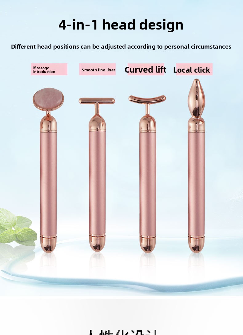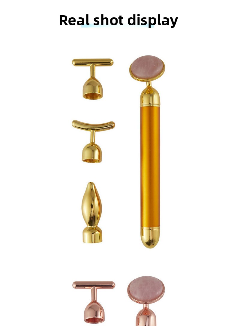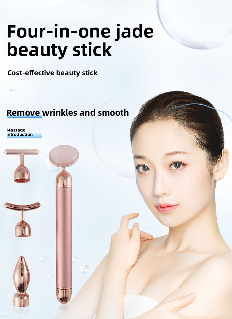 Multi-functional Massage: Four-in-one design combines gold stick, pink crystal, and jade massage tools for versatile skincare.